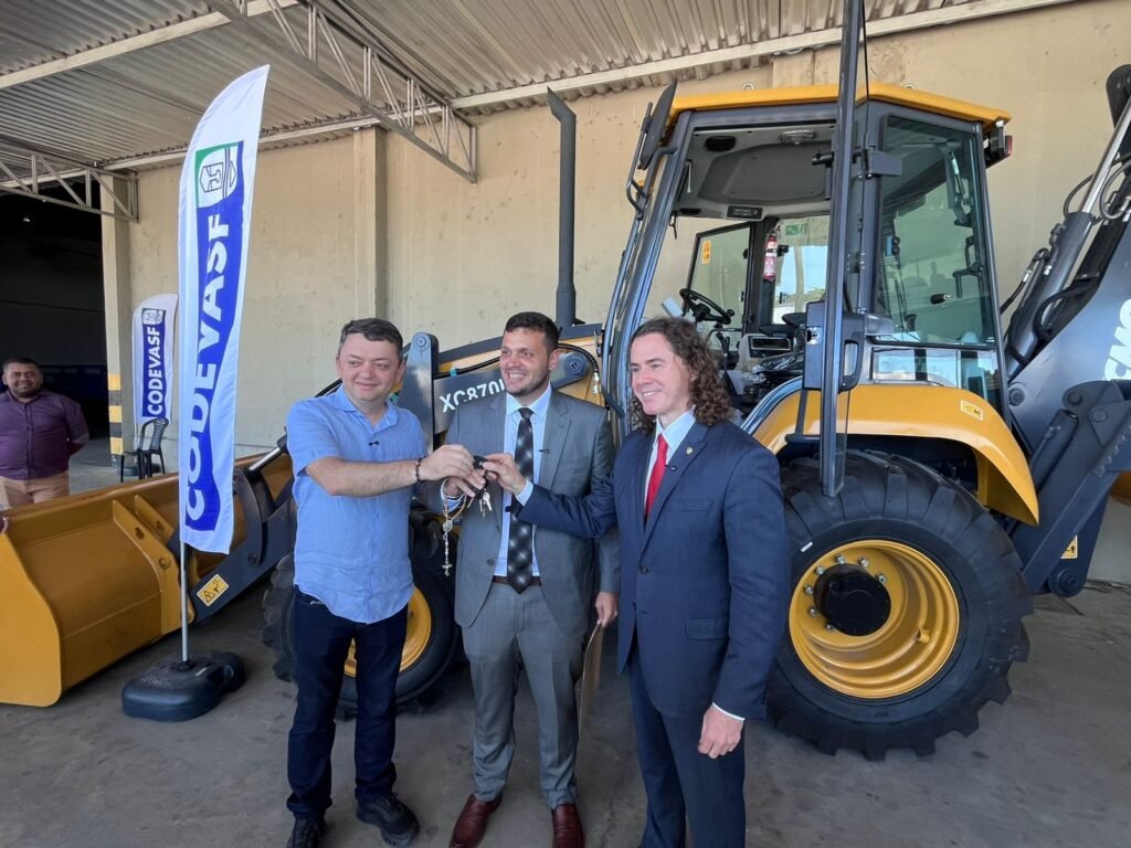O Senador Veneziano Vital do Rêgo (MDB-PB) entregou na tarde desta sexta-feira (10) mais conjuntos de máquinas agrícolas, para beneficiar mais três cidades paraibanas. Em parceria com a Companhia de Desenvolvimento dos Vales do São Francisco e do Parnaíba – Codevasf, foram beneficiadas as cidades de Aroeiras, Alagoa Grande e Mogeiro. O superintendente da Codevasf na Paraíba, Fred Queiroga, participou das entregas.