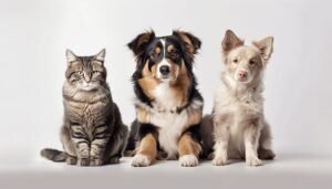Charming pampered pets play side by side, looking alert generated by AI