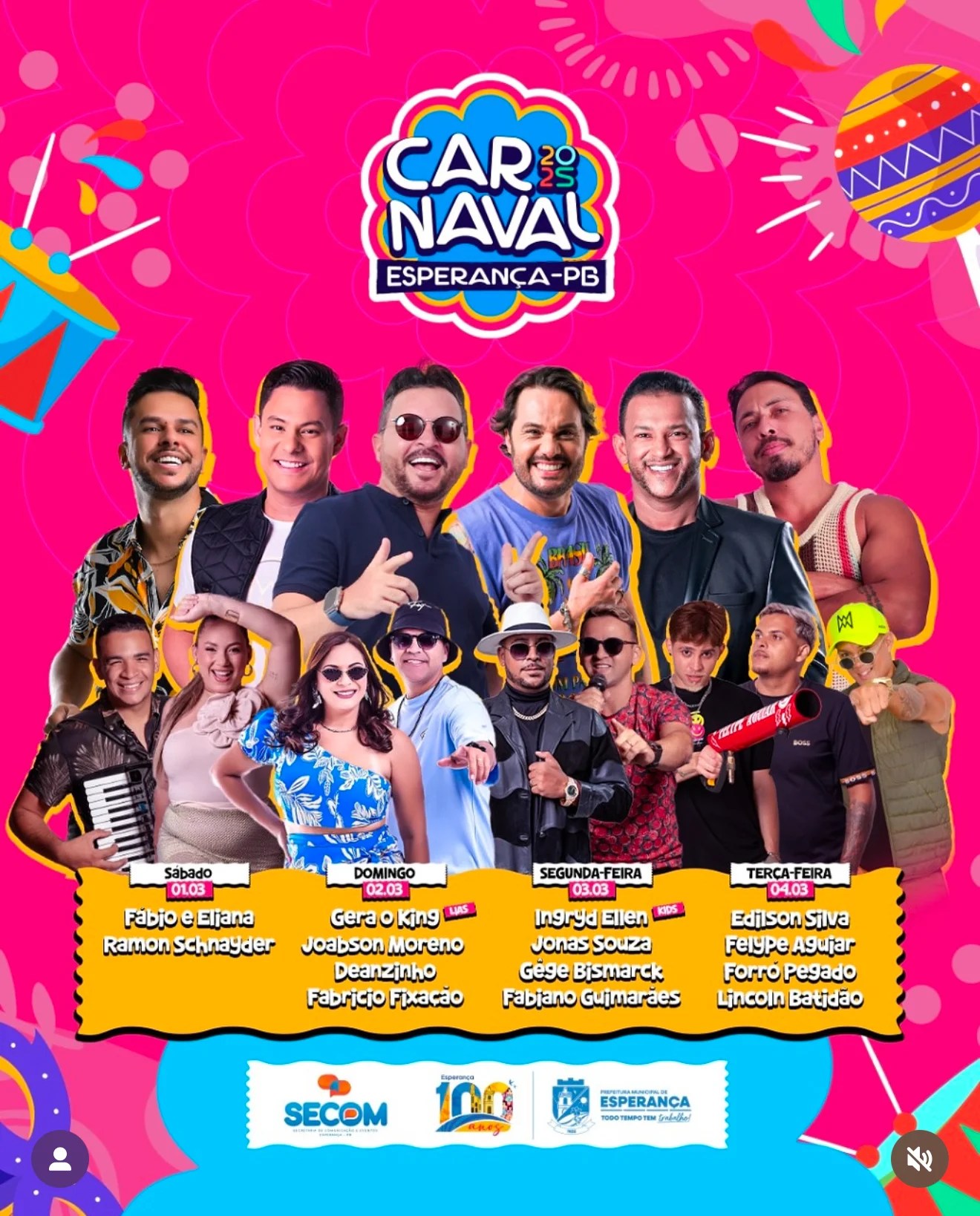 O lançamento da programação oficial do Carnaval de Esperança, marcado para os dias 01 a 04 de março, provocou uma onda de críticas nas redes sociais. Apesar da tradição e da grandiosidade que marcaram as edições passadas, a atual lista de atrações – que inclui nomes como Fábio e Eliana e Ramon Schnayder no sábado (01/03), Gera o King, Joabson Moreno, Deanzinho e Fabrício Fixação no domingo (02/03), Ingryd Ellen, Jonas Souza, Gege Bismarck e Fabiano Guimarães na segunda-feira (03/03), e Edilson Silva, Felype Agujar, Forro Pegado e Lincoin Batidão na terça-feira (04/03) – não conseguiu atender às expectativas do público.